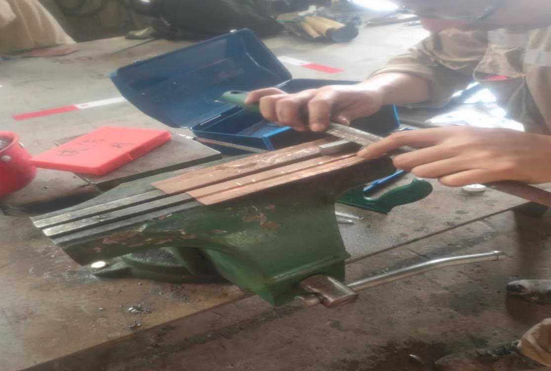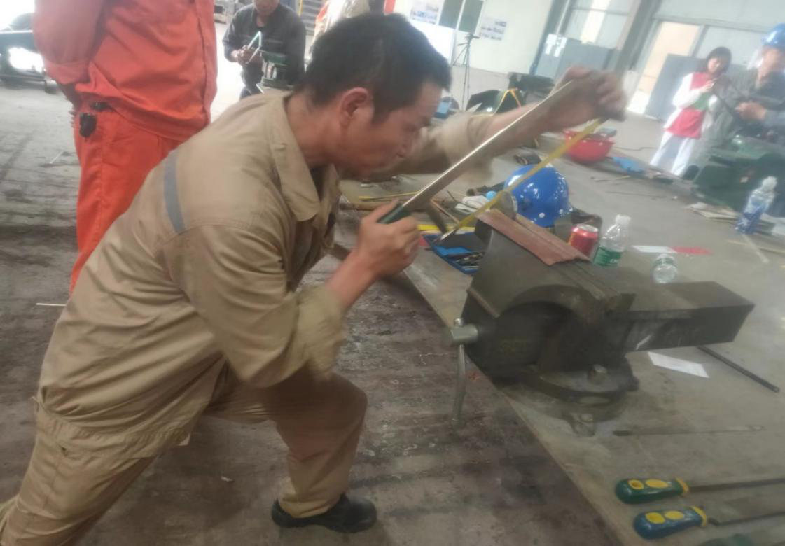 本次比武活動既有安全理論知識也有實操技能的考試??疾靻T工的安全理念和員工的操作能力。整個實操考試流程包括畫線、鋸、搓、打孔、磨等工序,精度就是技術(shù),小工件體現(xiàn)了大工匠精神。