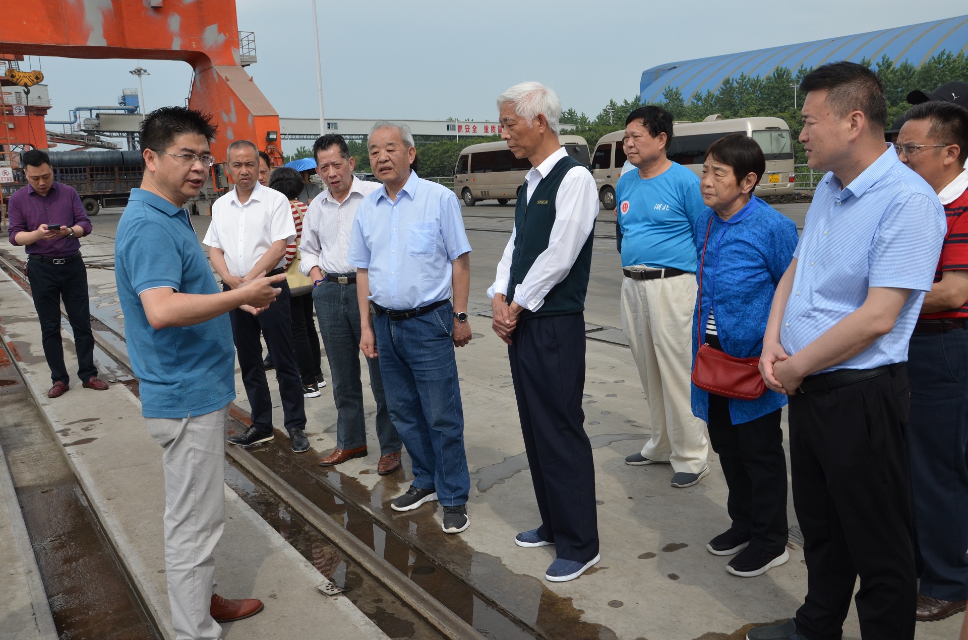 【概要描述】2022年5月25日,咸寧市人大常委會(huì)原常務(wù)副主任劉彥其、胡毓軍等20余位市人大退休領(lǐng)導(dǎo)蒞臨公司考察調(diào)研。公司黨委書記林云慶,黨委副書記蔣利銓,焦化廠廠長林星等領(lǐng)導(dǎo)熱情接待。  林云慶書記從公司創(chuàng)建投產(chǎn)、集群發(fā)展到轉(zhuǎn)型升級(jí)以及下一步發(fā)展規(guī)劃等方面向領(lǐng)導(dǎo)們作了詳細(xì)介紹,同時(shí)對(duì)領(lǐng)導(dǎo)們的到來表示誠摯歡迎,感謝他們長期以來對(duì)公司發(fā)展的關(guān)心支持?! ≌{(diào)研組一行先后實(shí)地參觀考察了湖北順樂鋼鐵、嘉通物流碼頭、焦