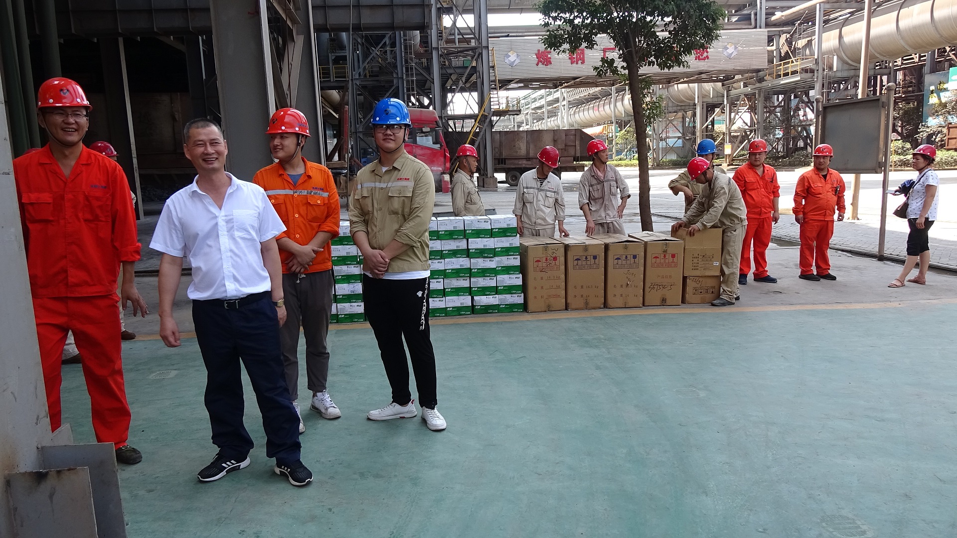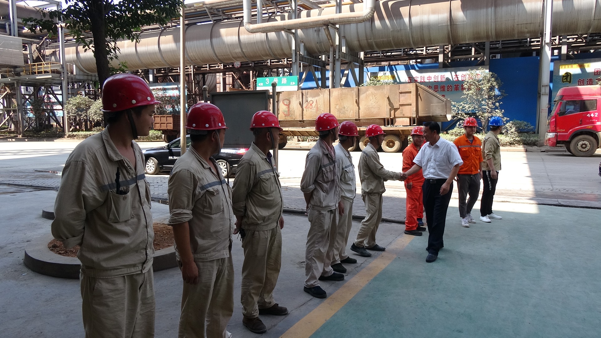 【概要描述】連日的持續(xù)高溫,酷熱難當(dāng)。7月31日上午,縣委常委、縣總工會(huì)主席余忠東一行蒞臨公司開(kāi)展暑期“送清涼”活動(dòng),親自為仍堅(jiān)守、奮戰(zhàn)在生產(chǎn)、建設(shè)一線的金盛蘭職工送上綠豆、礦泉水等防暑物品。??在送清涼活動(dòng)中,余主席仔細(xì)了解公司一線職工的工作和生活情況。他指出,在抓好生產(chǎn)、經(jīng)營(yíng)和新項(xiàng)目工程建設(shè)的同時(shí),要高度關(guān)注、重視高溫天氣下職工的健康和安全,扎實(shí)做好防暑降溫和安全生產(chǎn)工作,確保生產(chǎn)、安全兩不誤。一線職工要